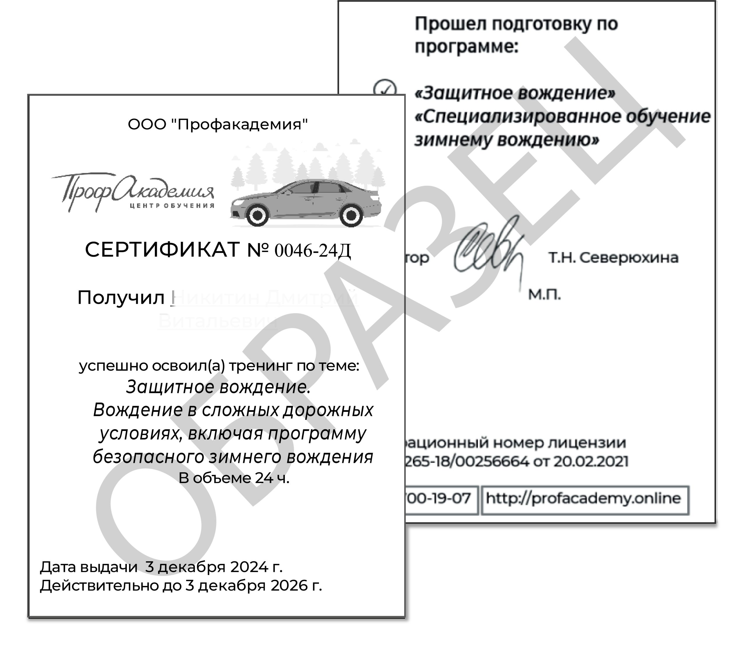 Вождение в сложных дорожных условиях, включая программу безопасного зимнего вождения